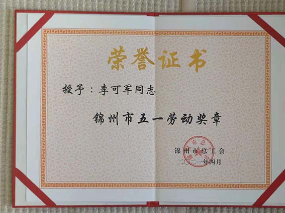 日,李可軍董事長榮獲“錦州市五一勞動獎?wù)隆睒s譽稱號。