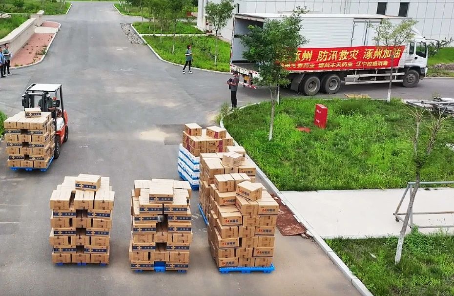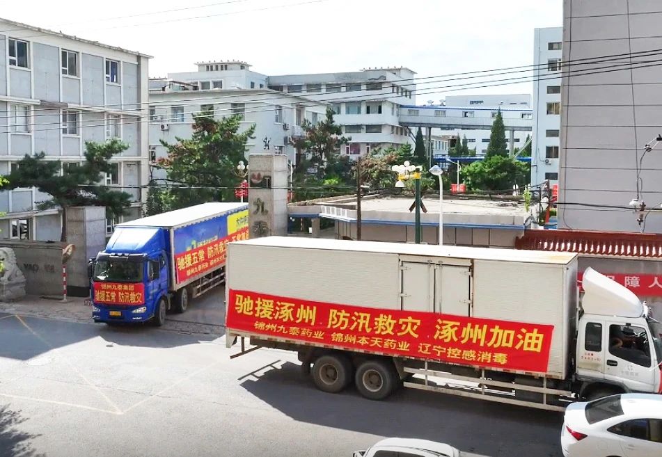 8月5日到7日,錦州九泰藥業(yè)及集團(tuán)下屬錦州本天藥業(yè)、遼寧控感消毒科技公司三家企業(yè)上下聯(lián)動,全力組織員工從三家企業(yè)庫房緊急調(diào)配包括復(fù)方氯己定撒粉、復(fù)方紫荊皮水楊酸溶液、硫酸慶大霉素碳酸鉍膠囊、蒲地藍(lán)消炎片、對乙酰氨基酚片、氨咖黃敏膠囊、乙醇消毒液、84消毒液、碘伏消毒液及消毒片等價值300多萬元的急需藥品及消毒用品。其中消毒消殺用品因庫存不足,企業(yè)臨時決定增加生產(chǎn)計劃,員工加班加點(diǎn)24小時連續(xù)生產(chǎn),爭分奪秒,將1400余件的救援藥品馳援涿州、五常、舒蘭等地,用于災(zāi)區(qū)救援,保障受災(zāi)群眾人身安全,助力災(zāi)后重建及復(fù)工復(fù)產(chǎn)等工作。